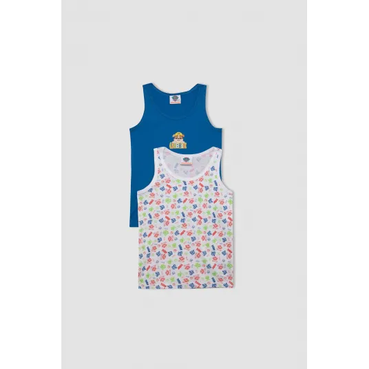 DeFacto, Set de topuri din bumbac - 2 piese, Alb, Albastru royal, 98-104 CM
