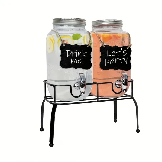 Demine - Set de 2 recipiente de sticla cu suport metalic si robinet pentru bauturi, ideal pentru petreceri si evenimenteDemine - Set de 2 recipiente de sticla cu suport metalic si robinet pentru bauturi, ideal pentru petreceri si evenimente223609821223609821