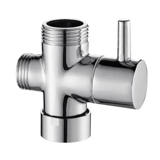 Despartitor de furtun in forma de T cu 3 cai, zggzerg, cu maner de blocare, Simplu de instalat si usor de utilizat, Inlocuire ideala pentru devierile de dus, Cromat, Argintiu