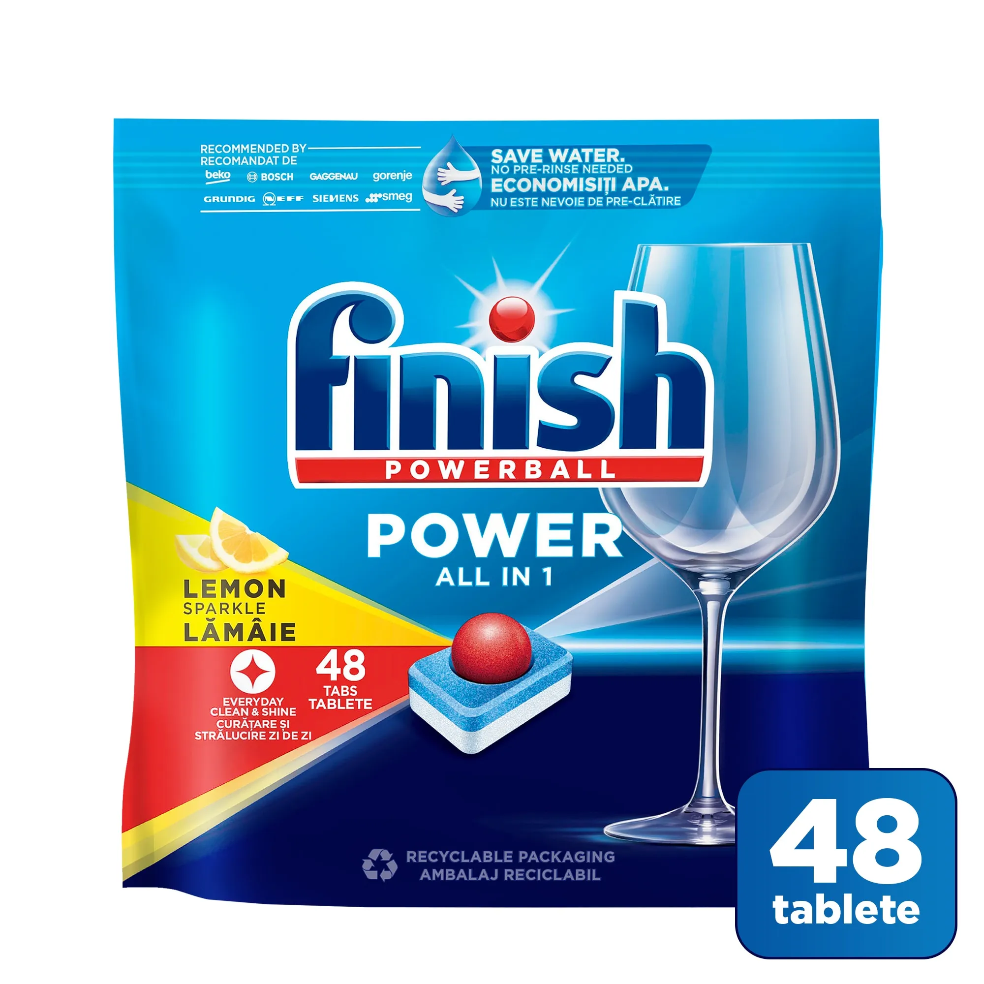• Finish Power All in 1 Lemon este sigur pentru masina ta de spalat vase si pentru mediu, cu un parfum racoritor de lamaie.