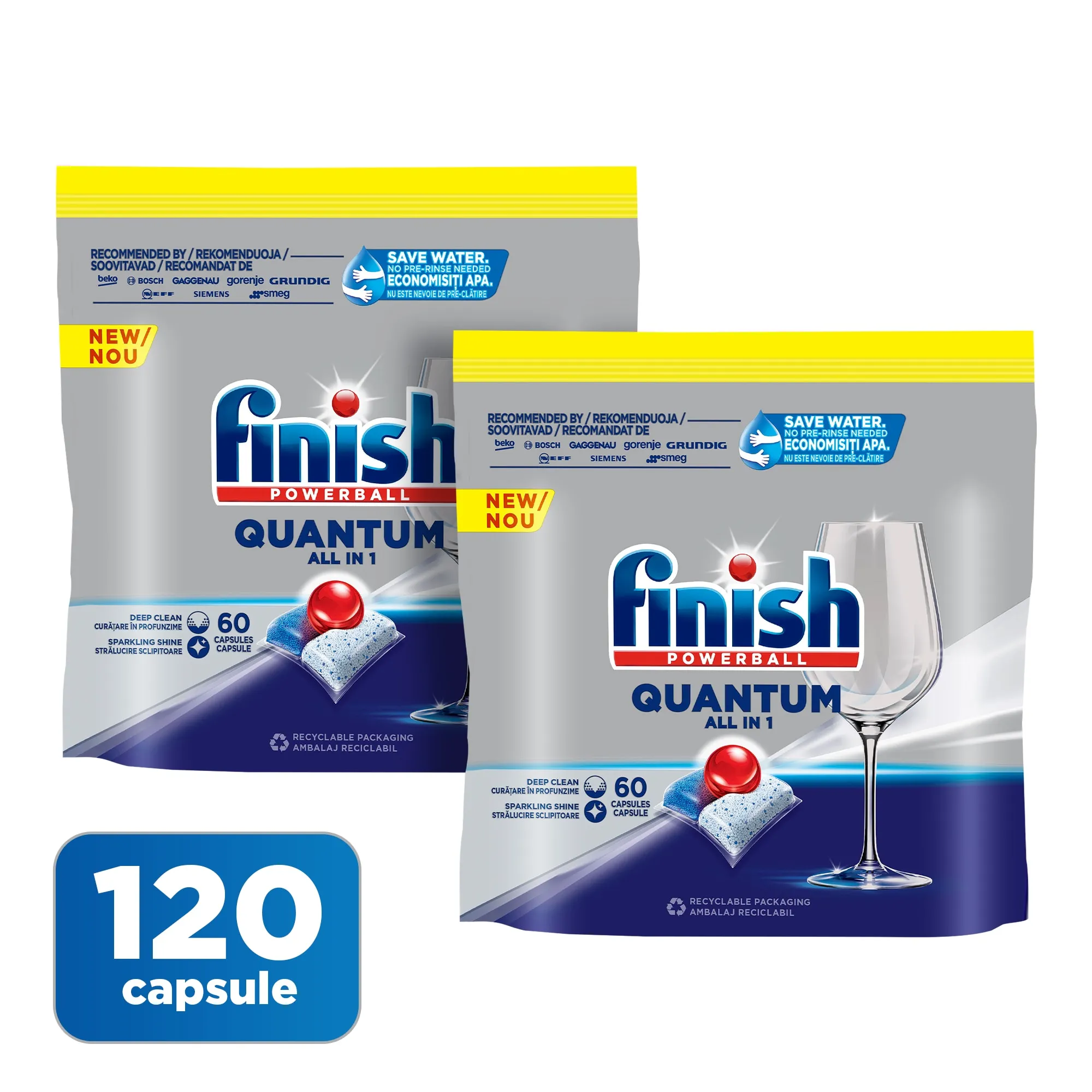 Detergent capsule pentru masina de spalat vase Finish Quantum All in 1, 2x60 buc, 120 spalari