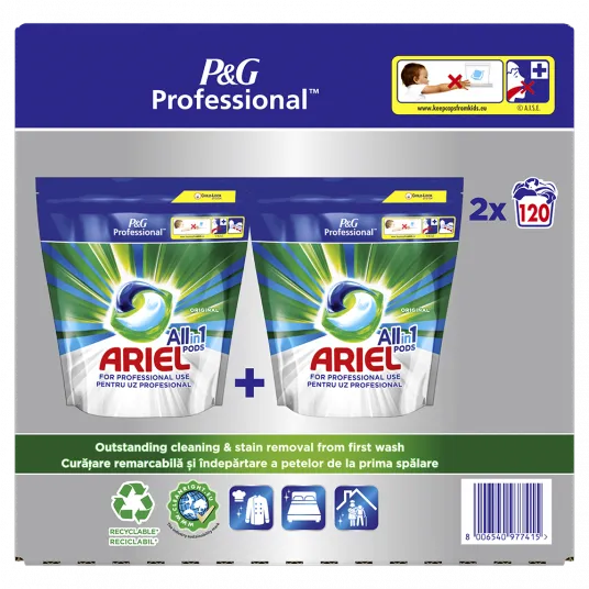 Detergent de rufe capsule Ariel Professional All in1 PODS Regular, 120 spalariDetergent de rufe capsule Ariel Professional All in1 PODS Regular, 120 spalari222243053222243053