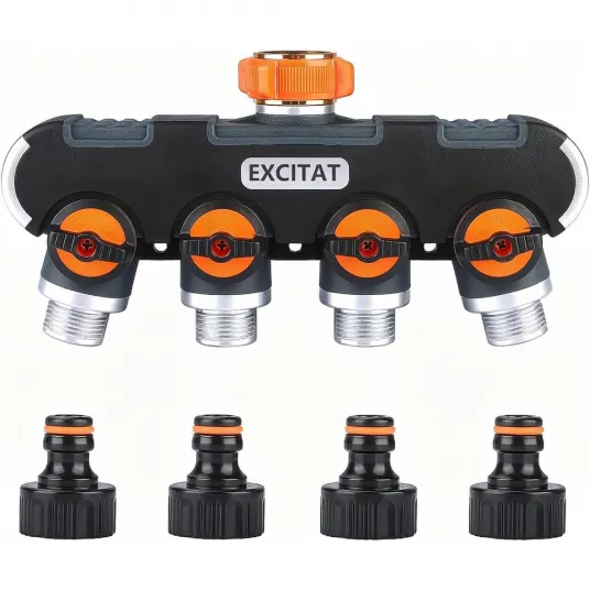Deviator cu 4 cai, 3/4", Excitat, Debit reglabil, 4 adaptoare de robinet, Negru/Portocaliu