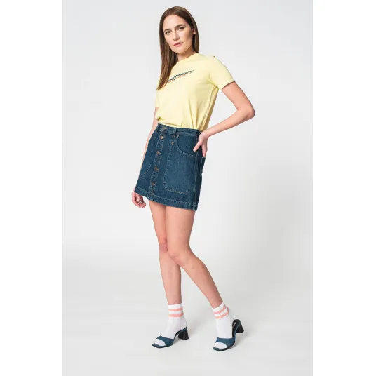 Diesel, Fusta de denim cu nasturi si talie inalta De-Albus, Albastru inchis, 29