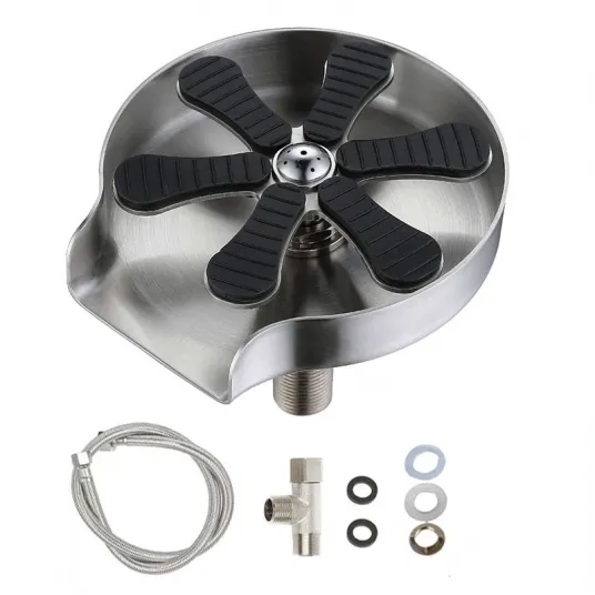Dispozitiv pentru clatire pahare, Rqiurpn, Kit spalare rapida sub jet presiune apa, inox, Argintiu