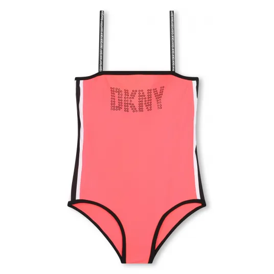 DKNY, Costum de baie intreg cu imprimeu logo, Corai, 156 CM