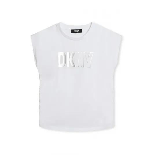 DKNY, Tricou cu imprimeu logo, Alb optic, Argintiu, 114 CM
