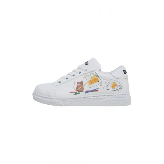 DOGO SHOES, Pantofi sport din piele ecologica Mission Cheese Possible, Albastru prafuit, Portocaliu mandarina, Alb optic, 34 EU