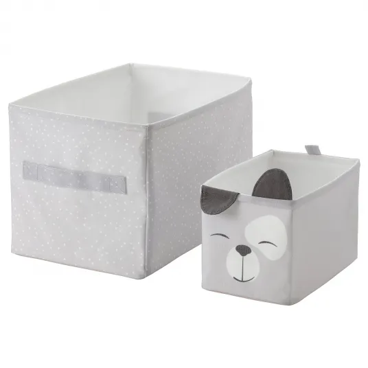 Aceste cutii textile decorative sunt perfecte pentru camera copiilor, ca sa pastrezi toate lucrurile organizate, scutece si tetine, hainute si jucarii. Sunt fabricate din poliester reciclat si sunt pliabile.