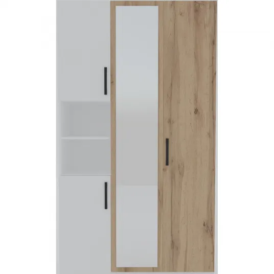 Dulap Asaro Arelia se remarca prin designul modern, transformand orice spatiu intr-un refugiu sofisticat. Liniile sale elegante si curate emana eleganta, facandu-l o potrivire perfecta atat pentru interioarele traditionale, cat si pentru cele contemporane. Combinatia de culori alb si stejar adauga o nota de caldura si se va armoniza fara efort cu mobilierul existent.