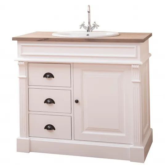 Dulap baie ornamentat pentru lavoar cu 3 sertare si 1 usa, blat stejar, lavoarul inclus in pret, culoare dublu color, 100% lemn masiv