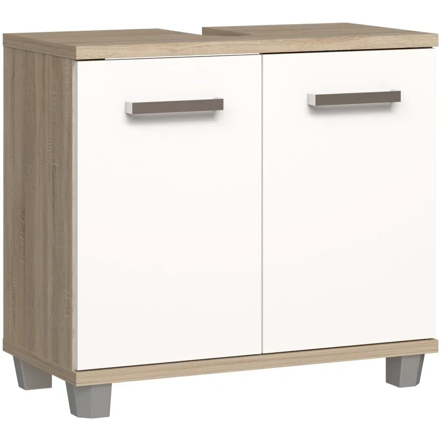 Dulap baie pentru lavoar Forte Veris, 2 usi, 68.6x34.8x62 cm, stejar Sonoma/ alb super lucios