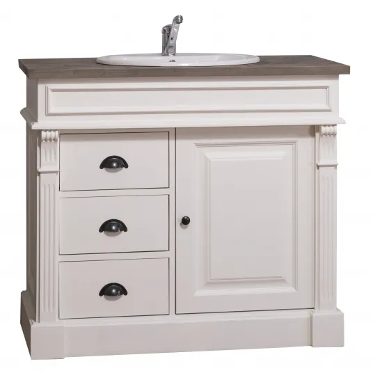 Dulap baie Szel-Mob ornamentat pentru un lavoar, cu 3 sertare si 1 usa - lavoarul este inclus in pret, culoare dublu color, sertare cu sine,lemn masiv