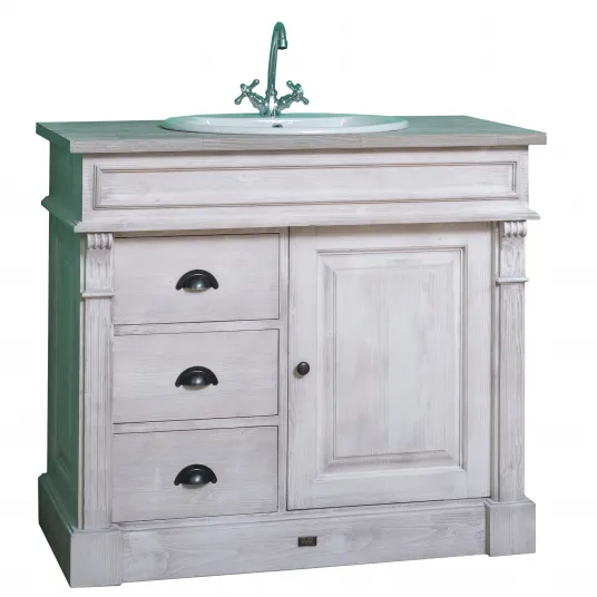 Dulap baie Szel-Mob ornamentat pentru un lavoar, cu 3 sertare si 1 usa - lavoarul este inclus in pret, culoare gri, 100% lemn masivDulap baie Szel-Mob ornamentat pentru un lavoar, cu 3 sertare si 1 usa - lavoarul este inclus in pret, culoare gri, 100% lemn masiv701900024701900024