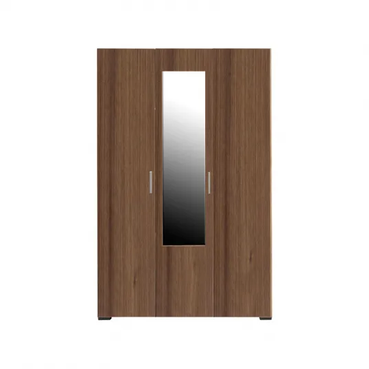Dulap CORINNE 3 usi, 4 rafturi, bara de haine, oglinda, nuc, cant vanilie, 120x50x188 cm
