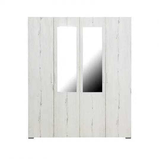 Dulap CORINNE, oglinzi, 4 usi, 4 rafturi, bara de haine, alb Elvetia, 160x50x188 cm