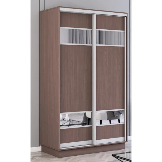 Dulap cu usi glisante Mobildor-Lux Fox 100x210 (2226 Wenghe) Usi din PAL cu elemente oglinda