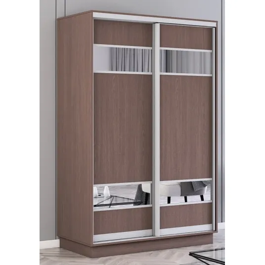 Dulap cu usi glisante Mobildor-Lux Fox 140x230 (2226 Wenghe) Usi din PAL cu elemente oglinda