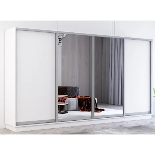 Dulap cu usi glisante Mobildor-Lux Fox 370x210 (110 Alb) Usi una PAL/Una oglindDulap cu usi glisante Mobildor-Lux Fox 370x210 (110 Alb) Usi una PAL/Una oglind222871003222871003