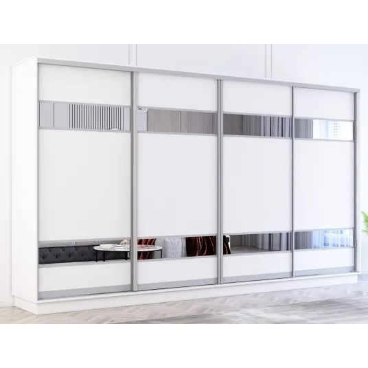 Dulap cu usi glisante Mobildor-Lux Fox 370x230 (110 Alb) Usi din PAL cu elemente oglinda