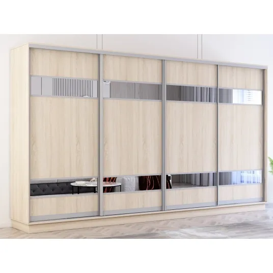 Dulap cu usi glisante Mobildor-Lux Fox 370x230 (3025 Sonoma) Usi din PAL cu elemente oglinda