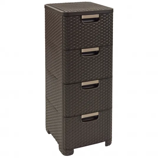 Dulap Curver, cu 4 sertare, 4x14 l, Rattan, Maro