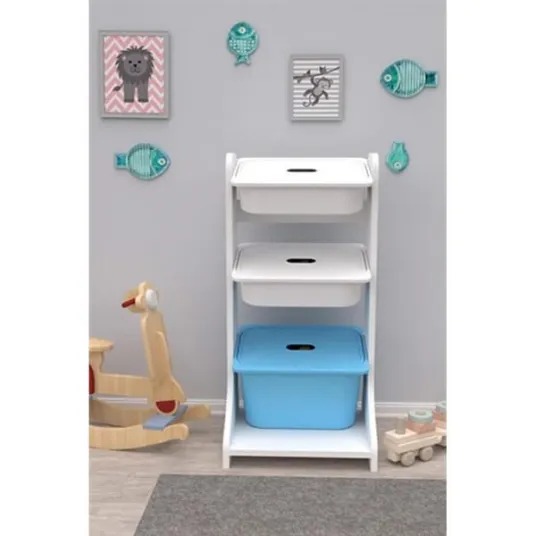 Dulap cutii depozitare NOIR, 44 x 35 x 90 cm, alb-albastru, 3 cutii