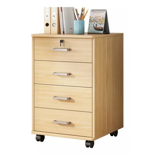 Dulap de birou din lemn cu 4 sertare, mobilitate flexibila, 65x37x34cm, maro