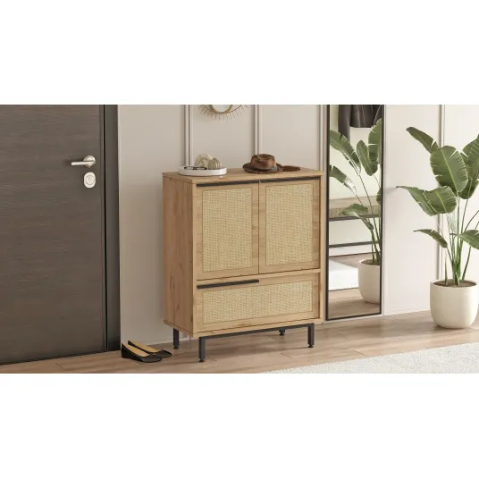 Cu designul sau elegant si modern, dulapul nostru de pantofi va ridica instantaneu estetica oricarei incaperi. Combinatia de culori de nuc si stejar adauga o nota de rafinament, facandu-l un accesoriu perfect pentru decorul casei dvs. Spuneti adio gramezilor dezordonate de pantofi si salutati un spatiu elegant si organizat.