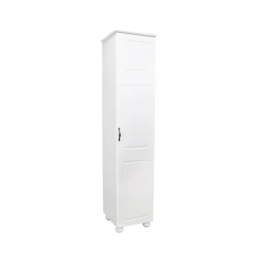 Dulapul cu 1 usa dreapta Dynasty are carcasa fabricata din PAL melaminat Albcu grosimea de 16 mm, iar usa este fabricate din MDF Alb cu grosimea de 18 mm. Usa este frezata pentru un aspect elegant, iar ornamentele de pe dulap fabricate din MDF Albcu grosimea de 25 mm desavarsesc acest aspect elegant. Picioarele clasice sunt fabricate din lemn si sunt vopsite, iar manerul metalic antichizat contribuie si el la aspectul deosebit al dulapului. In interiorul dulapului sunt 5 spatii de depozitare pe polite. Lungimea dulapului este de 450 mm fara ornamentul de sus si 480 mm cu tot cu ornamentele de sus. Inaltimea dulapului este de 2160 mm, iar adancimea este de 590 mm.