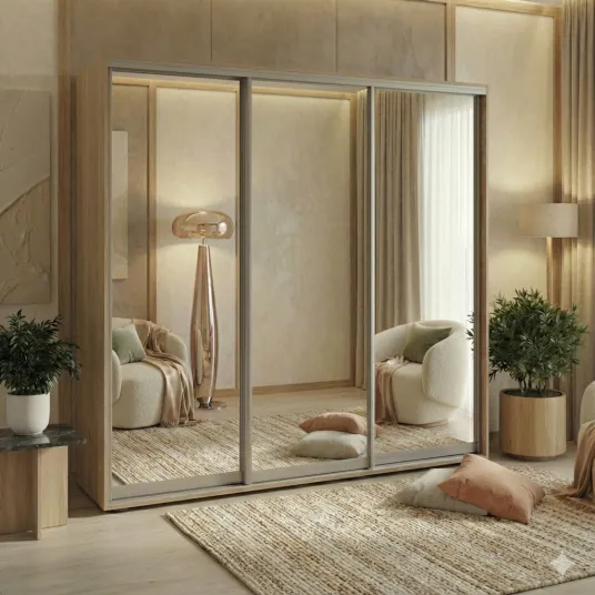 - Usi cu oglinda: Dulapul are doua usi cu oglinda, care nu sunt doar functionale, dar adauga si o nota de stil dulapului.