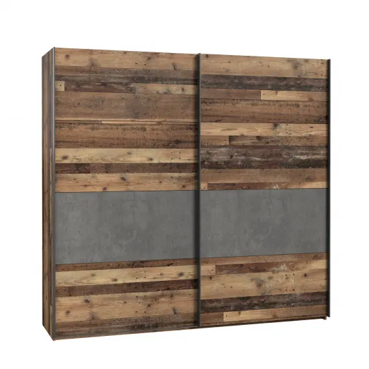 Dulap Forte Clif, dimensiuni 220.1x 210.5x 61.2, culoare lemn vintage/ beton optic gri inchis, 2 usi culisante, 2 bare de umerase