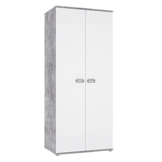 Datorita formei simple si functionalitatii sale, acest dulap cu doua usi in decor alb combinat cu beton gri deschis se va incadra cu usurinta in multe camere cu design diferit. In interiorul dulapului se gaseste un raft practic pentru imbracaminte pliata si doua bare de umerase. Elementele in decor gri imita structura si culoarea betonului. Usile cu balamale sunt echipate cu manere interesante, originale, in nuanta aluminiului. Sarcina maxima a barei de umerase este de 15 kg. Sarcina maxima a raftului este de 10 kg. Montarea pe perete este necesara (feronerie inclusa). Asamblare usoara.
