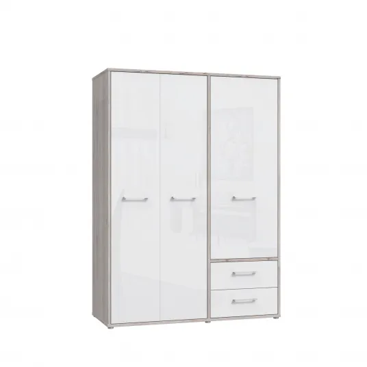 Dulap Forte Jandia, dimensiuni 146.7x 201.5x 60, culoare stejar nisipiu/ alb lucios, 3 usi, 2 sertare, bara de umerase