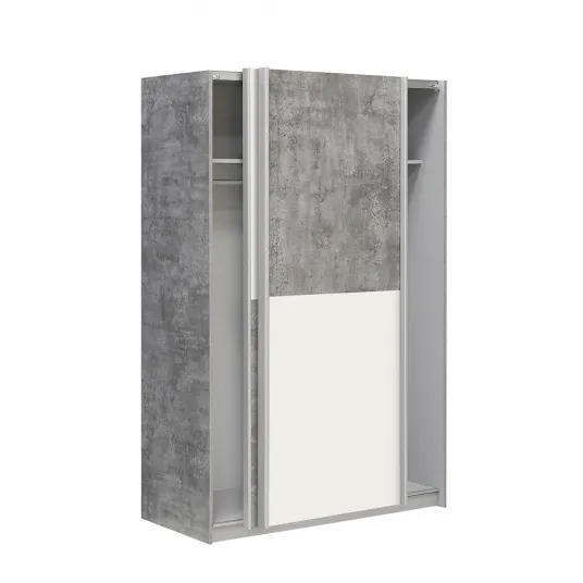 Dulap Forte Lupo, dimensiuni 120x 190.5x 61.2, culoare beton optic gri deschis/ alb, 2 usi culisante, 2 bare de umerase