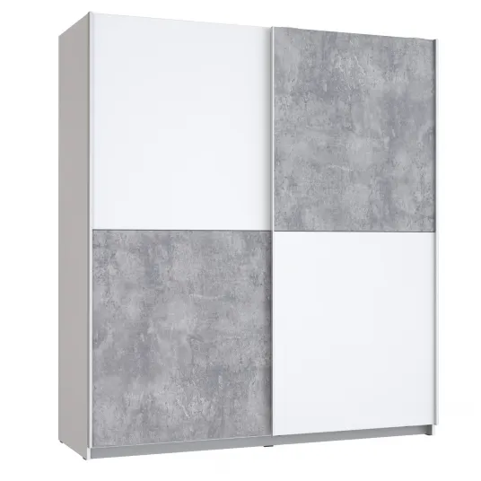 Dulap Forte Winnie, dimensiuni 170.3x 190.5x 61.2, culoare alb/ beton optic gri deschis, 2 usi culisante, 2 bare de umerase