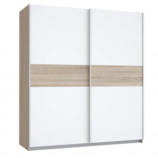 Dulap Forte Winnie, dimensiuni 170.3x 190.5x 61.2, culoare stejar Sonoma/ alb, 2 usi culisante, 2 bare de umerase