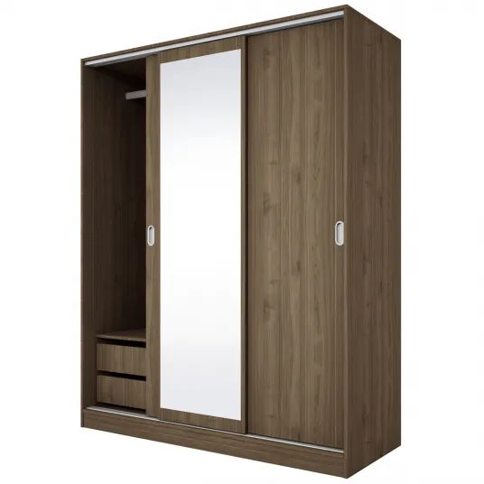 Dulap Irim Nevada, 150X59x191 cm, 3 usi, oglinda, Culoare Nuc Amiral