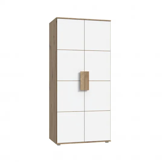 Dulap Kring Espoo, dimensiuni 91x201x58 cm, culoare alb/sonoma, 2 usi, bara de umerase