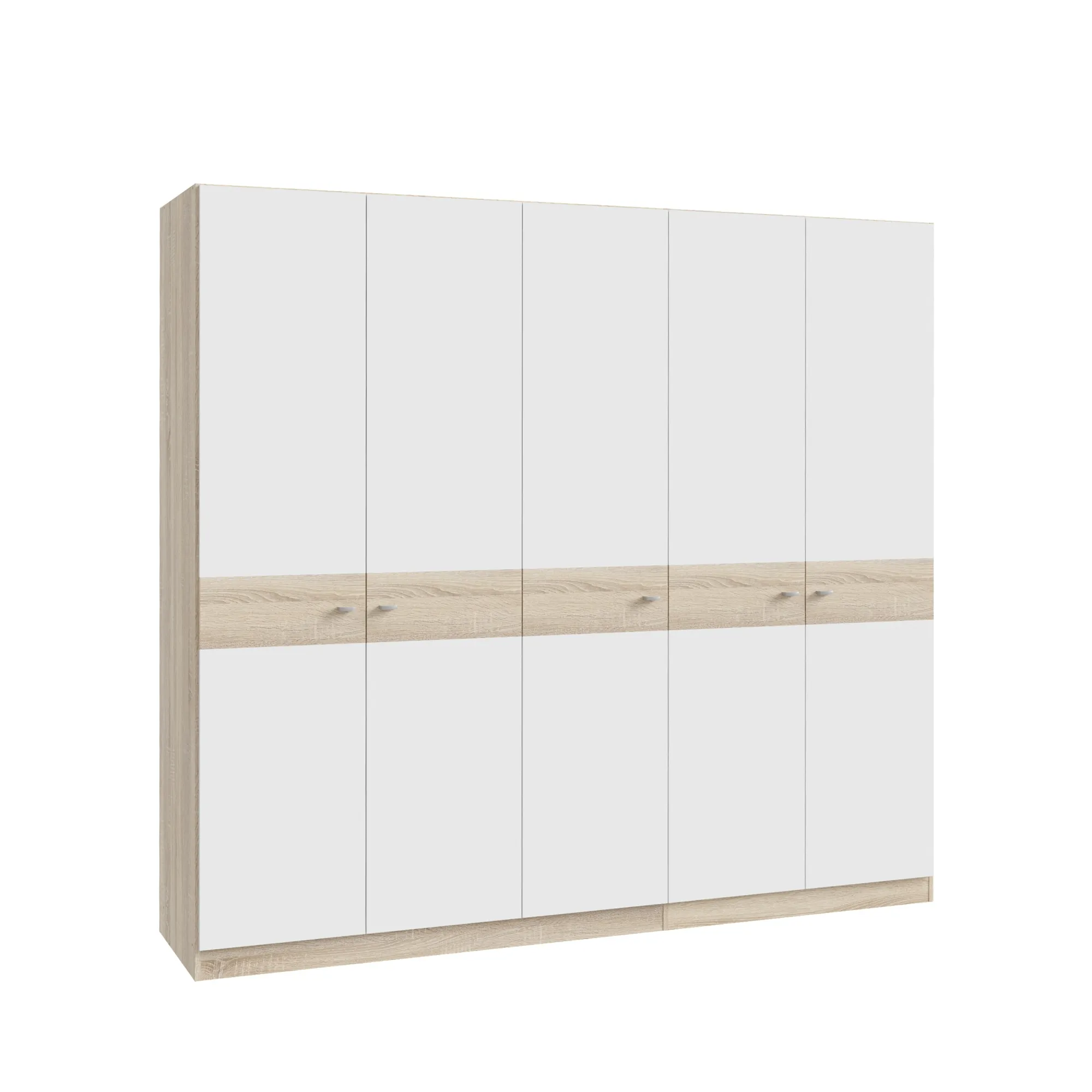 Dulap Kring Karvia, dimensiuni 225x210x54 cm, culoare alb/ sonoma, 5 usi, 3 bare de umerase