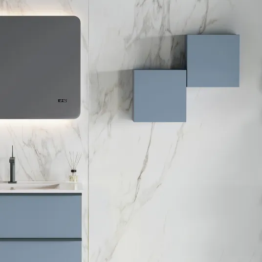 Dulap pentru baie modular, reversibil, cu o usa, albastru pastel mat, 30x30x15.1 cm