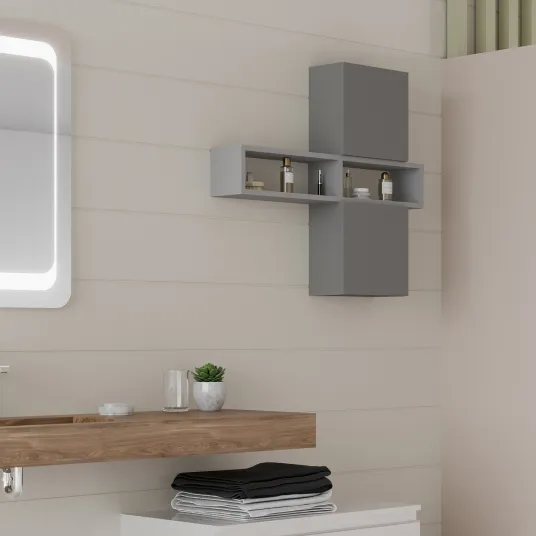Dulap pentru baie modular, reversibil, cu o usa, gri deschis mat, 30x30x15.1 cm