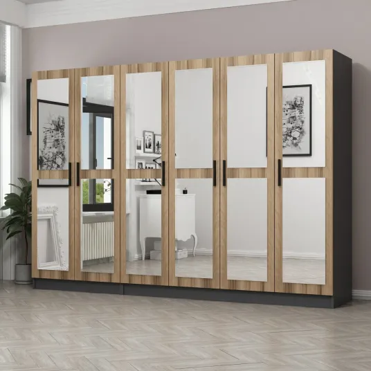 Cu dimensiunile sale generoase, acest dulap ofera spatiu din abundenta pentru a gazdui intreaga dvs. colectie de dulapuri. Nu mai trebuie sa inghesuiti hainele in spatii inguste sau sa va chinuiti sa va gasiti tinuta preferata. Dulapul nostru ofera numeroase rafturi, permitandu-va sa va organizati in mod ordonat hainele, pantofii, accesoriile si multe altele.