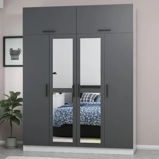 Dulapul se mandreste cu o culoare antracit uimitoare, care emana rafinament si modernitate. Designul sau elegant si contemporan se va imbina perfect cu orice decor de dormitor, adaugand o nota de lux sanctuarului dvs. personal. Pregatiti-va sa va impresionati oaspetii cu acest dulap elegant si atragator.