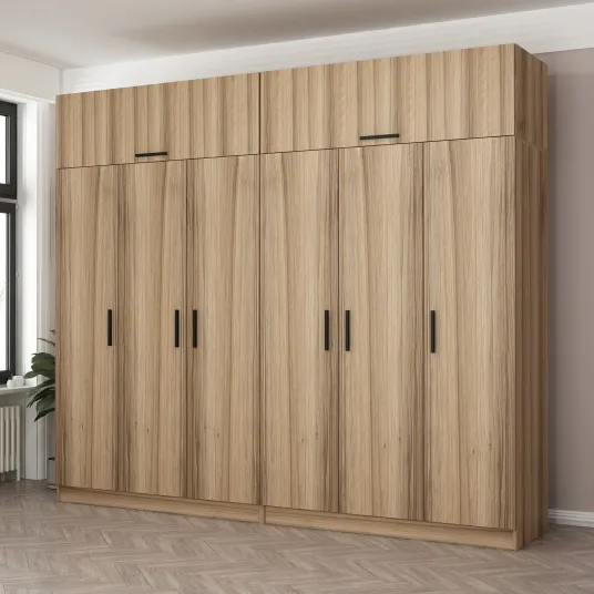 intelegem importanta de a investi in mobilier care dureaza. De aceea, garderoba noastra este construita cu placi aglomerate acoperite cu melamina de 18 mm grosime, asigurand o rezistenta si o longevitate exceptionale. Fiti siguri, acest dulap va rezista testului timpului, oferindu-va ani de zile de depozitare fiabila.