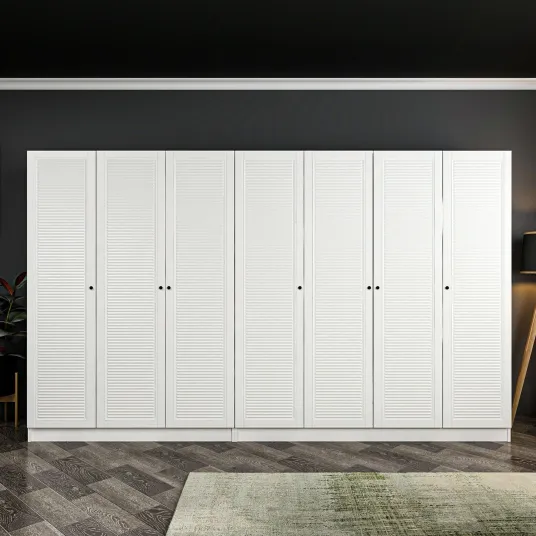 Designul curat si modern al dulapului nostru va ridica instantaneu estetica oricarei camere. Culoarea alba clara adauga o nota de eleganta si sofisticare, facandu-l o piesa versatila care completeaza orice stil de decor. Transformati-va camera intr-un sanctuar de stil si seninatate.