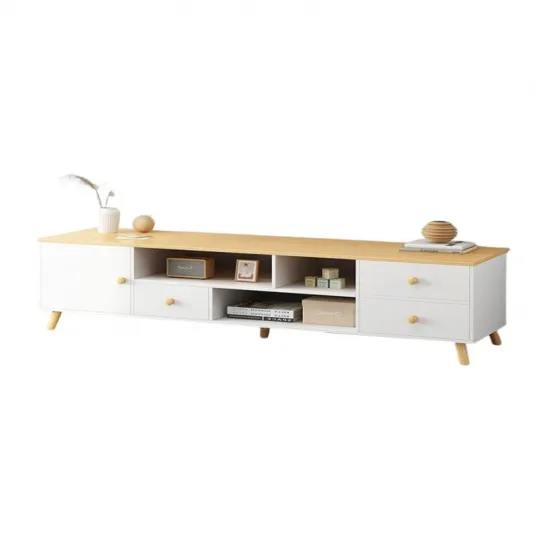 Dulap TV, patru usi de dulap, alb cald + stejar rustic, 140 * 30 * 38cm, Trei sertare