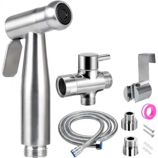 Dus pentru bideu, JENUOS®, cu furtun, cap T, montaj perete, cu accesorii incluse, inox, Argintiu