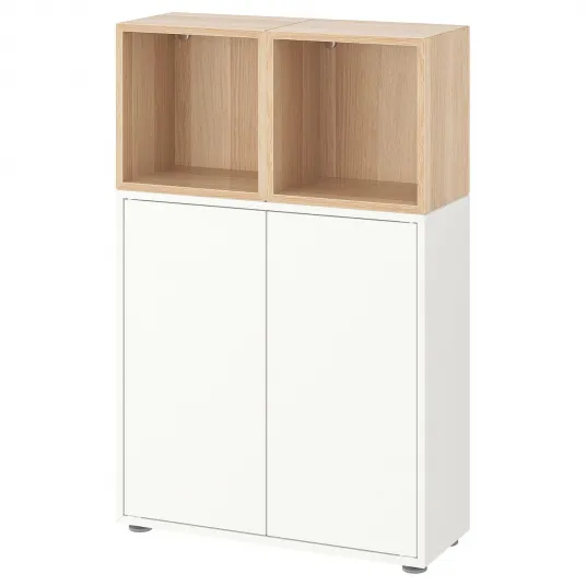 Unul dintre punctele principale ale dulapului combinat EKET este spatiul sau amplu de depozitare. Dulapul are mai multe compartimente, inclusiv rafturi reglabile, oferindu-va flexibilitatea de a va organiza bunurile in functie de nevoile dumneavoastra specifice. Indiferent daca aveti nevoie sa depozitati carti, electronice sau decoratiuni, acest dulap va acopera.