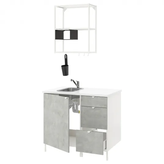 IKEA ENHET Bucatarie, alb/aspect beton, 103x63.5x222 cm